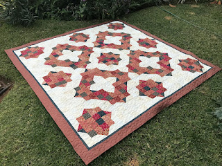 Catherine and Ryan took the plunge to sell their small townhouse and buy a lovely, free standing home with pool and large garden in the same area close to the schools. I shall not go into detail about the nerve-racking 'house' saga - an offer to purchase accepted and declined within 24 hours, a nervous purchaser who disappeared and reappeared, show houses and the inevitable tidying up, the house search, bond applications and why-did-we-ever-do-this-to-ourselves moments. During the roller-coaster ride, I pinned and stitched and pinned and stitched the quilt for the new house in faith.